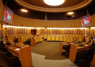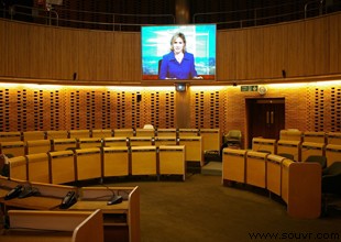 客户: 产品: 合作伙伴: 评价: 作为英国第一个提供网播服务的地方权利机构,伦敦Hounslow区议会在市政中心会议厅(Civic Centre Council Chamber)中采用了全新的技术,这个给人留下深刻印象的会议厅是用来举办区议会全体会议和其它大会的。Working Wall Ltd以大屏幕投影系统和话筒遥控摄像头而著称,新千年之初,该公司设计和集成了Hounslow区议会的视听系统。 Working Wall的Chris Slaney最近与区议会的高级视听设备技师Gary Burnham合作,采用ChristieLCD解决方案,对区议会的投影系统进行了更新,新设备与以前由该公司提供的旧架构实现了无缝集成。 “旧投影机的使用寿命已经到期,新电脑不再兼容旧的VGA设备,”Gary Burnham说。 新的解决方案除了采用新的XGA投影机,还要采用可以互换的镜头和镜头偏移装置,需要能提供足够的亮度和对比度,以便在很亮的人工光背景中正常显示,必须足够小巧,可以放进旧的安装托盘里。 因此,Chris Slaney确定使用2台亮度为4000 ANSI流明的Christie LX40 LCD投影机,配备4.3-6.0:1变焦镜头,投影距离12.45米,穿越圆形的会议厅,将影像投射在2个2.4m x 1.8m的屏幕上。 采用这个设计方案,坐72个议员座位(包括主持人座位)中的议员和观众楼座中的150位来宾都可以看到完整的显示画面。 这是一个很难满足的要求,但Working Wall知道,LX40具有自动变焦、聚焦和镜头切换等功能,备有快速镜头更换(FLC™)装置,有多种镜头选项,可以满足这个要求。 Working Wall不采用梯形失真矫正,所以镜头偏移功能是满足这个要求的核心。 “无论投影机有多好,采用梯形失真矫正功能都会在一定程度上降低投影图像的质量,”Chris Slaney说。 “我们了解投影机与屏幕之间的关系,可以通过我们的设计,满足控制图像的要求。 镜头偏移功能可以帮助我们将屏幕放在所有观众都能看到的位置,否则,我们要安装3个屏幕,才能取得理想的效果。” Gary Burnham说,Hounslow议会的额外收益是投影机的静音运行,它们以节能模式运行,有暂停休息功能,灯泡使用寿命延长了一倍,“投影机可以自动进入降温模式,投影结束后会自动关机,这有助于延长灯泡使用寿命,投影结束后不再需要工程师到场。” 投影机在Crestron的控制下运行,接收来自笔记本电脑的输入信息,以及来自DVD/VCR、观察仪和电视的信号,所有这些信号都是通过Crestron 1550C触摸控制器进行控制的。 音响设备包括一套Bosch CCS 800会议/台式话筒(以及无线话筒),还包括一个IML表决系统,通过红外线向远程混频器提供输入信号。会议厅两个楼层上有4个壁挂式RCF音箱。 |