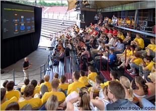 客户: 产品: 合作伙伴: 简介: 评价: 专业舞台技术公司、Christie合作伙伴Audio Rent在曼海姆的自然科学体验活动“探索科学2006”中依靠高性能、高效率的Christie Roadster S+20K数字投影机获得成功。 从7月11日至13日,在曼海姆Luisenpark举行的多项大型科学竞赛中,500到600名小学生与各位用户同台竞技,相互配合,参加建造水火箭等活动。 此外,全体人员还参加了试验展示,这是一项关于自然科学的展览和展示活动。 Audio Art公司为占地42公顷的活动场地提供了电力、等离子显示器和舞台设备。 技术人员需要为可容纳1,200人的大型露天演出“海上舞台”进行专门的准备和布置工作。 由于演出在白天进行,Audio Rent公司需要采用一台性能强劲的投影机,能够在白天强烈的阳光下投影出清晰的影像。 “我们需要一台具有高分辨率和强大光学性能的投影机,”Audio Art公司的所有人Franz Steinhauser说。首先它必须做到影像清晰:“我们选择了Roadster S+20K,这款投影机具有20.000 ANSI流明的极高亮度。” Roadster S+20K是新一代的Christie投影机,专门为各类活动、展览和会议而设计。 它性能可靠,体积小巧。 这款3片DLP投影机具有很高的分辨率(SXGA+)、1.800: 1的对比度以及10位处理技术。 这些特性能够确保为您带来清晰锐利的图像和鲜艳明亮的色彩,即使是在有强烈环境光的条件下。 为解决投影机到屏幕之间距离过长(15米)的问题,专门采用了2,5-4,5:1的变焦镜头。 为确保太阳光不会直射在4 x 3米的屏幕上,Steinhausers团队想办法将阳光“遮挡”起来。 为此,需要先测量和计算阳光的路线。 然后使用一块深色背投箔片,并用绒毡将周围的部件遮盖起来。 舞台技术专家Franz Steinhauser说:“我们最终成功建造了一个日光影院。” |