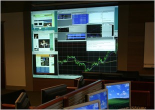 Tulane大学的A.B.Freeman商学院在其设备先进的交易中心中使用Christie CX50-100U背投显示箱体,显示财经数据和公司交易信息。