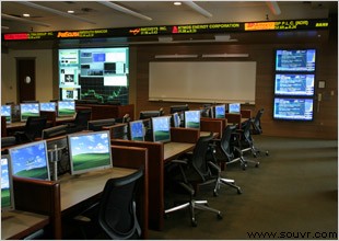 Tulane大学视频墙由50个Christie GraphXMASTER CX50-100U单芯片DLP™显示墙箱体组成。这些箱体排列成3x3的阵列,可以提供最可靠、高性能、无缝密合的显示墙应用。50英寸的显示箱体专为体现DLP™技术的数字优势而设计。交易中心的这些投影显示箱体由Christie FRC-5000多媒体显示墙控制器进行控制,这种控制是通过VideoMAX 多视频输入模块实现的,借助于这个输入模块,可以在整个视频墙上灵活地显示多个图像或单一图像。 |