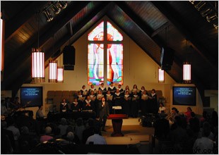 解决方案 在搬到坦帕之前,Roberts和他的家人是亚特兰大一个规模迅速增长的大型信众组织中的一员。 他亲眼目睹了在实况转播的礼拜活动中对高清晰度影像的应用。 在亚特兰大,在正在布道的牧师身后,放置了一个大型屏幕,投影出的图像给人一种错觉,就好像牧师是在实况转播中的讲台上布道的。 Roberts 知道,教堂对他们的合作伙伴Clark ProMedia(一个全国性的演出技术公司)很满意。 DIBC与Clark ProMedia(CPM)就空间的技术设计进行合作再自然不过了。