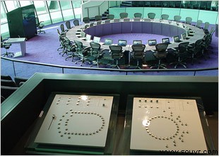 客户: 产品: 合作伙伴: 投影机细节: 当位于泰晤士河南岸的伦敦市长的大伦敦主管机构总部在2002年9月向公众开放的时候,他们提出想让公众通过电视、无线电和互联网联系他们。 关键的技术要求之一是建立一个主干网,并在建筑内提供多个接入点,以便将数据与文本、视频和音频格式的信息源送入任何桌面或显示屏幕、GLA网站或全国广播。 但是,赢得210万英镑合同的IVC还被要求提供高档便携式演示单元,以便同时在一楼的小会议室内和Foster & Partners设计的九楼的华丽建筑内使用,并符合总体装饰风格。 IVC想出了一个基于80" dnp黑珠屏幕和ChristieRoadster X6 DLP投影机的巧妙解决方案,并设计了具有自备电源的移动演示系统。 面对从非常光滑的圆顶泄漏出来的大量环境光线,IVC知道他们需要可以适应强光环境的系统,而且该系统应具有超好的影像对比度和亮度均匀性。 因此,IVC的Jim Maynard联系了dnp的英国经销商Paradigm AV。 配有Paradigm背投装置的dnp黑珠屏幕是专为控制室内的高分辨率影像投影以及需要超高对比度和亮度均匀性的其他应用而设计的。 但是,虽然Paradigm画出了投影图纸,但IVC仍然必须设计和制造机箱以整合这些细节,并使最终的产品既保持极小的误差,又具有完整的功能。 这可以被接入向公众开放的有256个座位的会议室,并成为系统主显示的一部分或进入伦敦的客厅。 由Jim Maynard开发的单元可以在需要时作为一个独立解决方案在建筑内移动。 利用液压控制和足够行驶一英里的电力,该单元变得非常机动,而且具有一定的控制功能。 即使是充电系统也已被改为永久连接的方式,而且不会漏电,这使电池可以在单元接通主电源时立即开始充电。 Jim解释道,原始概念是以4单元显示屏为基础的,但考虑到应用的特点,他感到这些单元始终需要维护。 “我觉得需要一个单镜头投影解决方案,因此,问题变成了如何实现自由移动,而无需设定最终位置。 该单元完全配备了VCR和DVD播放选配件、永久安装在12U机架内的电脑输入、放大和控制设备,以及扩音设备和用于冷却的内部温度传感器。” 配有近距离0.8镜头的Roadster X6提供了6,000流明的额定亮度,并可以显示各种信号源,它的氙气照明确保了颜色和图像质量在投影机灯泡的整个生命周期内都保持一致。 考虑到82磅的重量和相对小巧的外观,它非常适合于这项应用。 Jim Maynard证实,在与承包商谈判一年之后,他们只有8周的时间来安装所有的广播设施、AV、声音、控制系统和网上广播设施,以及遍布建筑物的数据和电话主干网。 但他们还是在预算范围内按时完成了安装工作,从而使女王陛下得以出席开幕典礼。 |