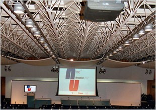 合作伙伴: 评价: 位于Congress House的英国工会联盟(TUC)的联盟大厅和会议室是放置大型贵重资产以及举办公司活动的场所,需要采用先进的演示技术。 尽管英国工会联盟过去两年在许多项目中采用了CAVE,但为这两个礼堂配备相关设备的合同还是以招标的形式签订的。 联盟大厅(Congress Hall)需要一个配备固定设备机架和组合工作台的系统,这个系统很灵活,放在定制的机柜中,还需要一个感应环路红外线系统。 这个礼堂选择投影系统时必须在成本和输出亮度之间取得平衡,因为位于5层的会议室(Council Chamber)的窗户很大,背景光很亮,而联盟大厅(Congress Hall)地下室则保留了上世纪50年代样式的天花板。 CAVE为客户进行现场投影试验,确定每台投影机如何处理背景光。 最后,他们也看了竞争厂商的DLP投影机,但考虑到性价比,TUC还是更看好Christie的多媒体LCD Roadrunner解决方案。 160座的会议室适合采用Christie RoadRunner L6投影机。而530座的礼堂则适合采用输出亮度更高、配有长投射镜头、悬挂在天花板上进行正面投影的L8,投影机放置在礼堂后部组合工作台上方,投影屏幕是12英尺的下拉式屏幕。 “L8可以提供足以应付玻璃天花板的输出亮度,其色彩清晰度,以及不需要进行梯形失真矫正的垂直/平行方向镜头偏移,都给我们留下了深刻的印象,”CAVE总监Bob Neil说。 这两款投影机都采用四灯泡组合,可以提供足够的亮度,L8的亮度为7700 ANSI流明,L6的亮度则为5200 ANSI流明(其投影屏幕规格为10英尺)。 由于冗余因素,如有必要,系统能以一半功率的状态运行,这也是优势之一。 联盟大厅(Congress Hall)里的系统有两种运行模式;非技术人员可以通过位于讲台位置的触摸屏进行操作,视听技术人员则可以通过媒体机柜中的有线控制面板,进行更复杂的演示。 一台Extron设备负责处理信源切换,相关内容经过放大器之后,信号被转换成1024 x 768标准电脑图形。 19英寸的机架中有一台专用电脑处理输入的数据信号以外,此外还安装了一个吊架,用于投射DVD、VHS和视讯会议的内容。 Congress Centre的经理Martin Aberdeen说:“这些投影机质量可靠,可以显示精美的图像。” 我们在楼下的礼堂里使用L8,以提高亮度,而在会议室(Council Chamber)里,使用L6就够了,与设法遮蔽窗户相比,采用L6的性价比更高。 在此之前,我们没有任何视听设施,在过去两年里,我们一直期待着完善我们的设施。” |