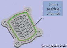 快速模具制造工艺 为说明 PolyJet 技术是如何应用到 RT 模具制造工艺中的,下面用一个详细的例子说明彩色硅胶按键的制作过程。 示例从完成模具设计后开始介绍。