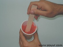 把硅胶注射到模具中。 在一只普通的塑料注射器中充入硅胶(您需要对每种颜色都重复这个过程)。 这里我们先做红颜色。 您可以使用搅拌的木棒将硅胶装入注射器。