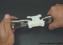 最后程序 用钳子夹住模具牢牢地合紧 RTV 模具以保证其完全密闭。这样可以去除多余的硅胶和残留气泡。要使硅胶变干,可以将模具在压力烘箱中放置三个小时,压强为 2 巴,温度为 70°C,或将模具闭合着在室温下放置 24 小时(见图片 5)。
