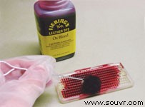 为了使颜色变暗,或者纠正不均匀的染色,需再涂上第二层苯胺染料。如果颜色太暗淡,或者有污点,则用乙醇擦拭表面以便从模型上去除染料,然后重复染色流程。允许染料干燥15分钟。用水冲洗模型并晾干。