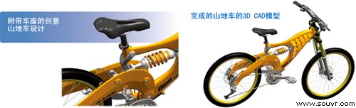 利用VIVID 9i设计具有创意的山地车 常规山地车的车架设计不能让Hieda先生满意,他决定独树一帜。 对于车架以外的部分,Hieda先生选择采用现成部件和配件,他设立的目标是设计一个全新的车架,重点突出用途和功能。