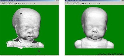 背景信息 为了完成该项目,公司必须使用计算机模型来确定电极的尺寸和形状,以便适应婴儿头部的曲线。采集数据的精确度十分重要,但又很难获得。 最后Tru-Test公司决定使用Polhemus的FastSCAN™手持三维激光扫描仪对两个精确玩具娃娃进行扫描。然后用FastSCAN的FastRBF Extensions™创建出数字化模型,导出到SolidWorks中进行处理。 扫描和处理 本项目中的扫描数据要导入到SolidWorks CAD软件中进行处理,所以应当把模型的面数降低到可控制的范围。FastRBF Extensions的简化功能把玩具娃娃扫描图的表面数量由169,000降至23,000,缩减率为86%,对于新的娃娃模型,则从97,000降低至17,000,缩减率达82%。图4所示的是模型在精简前后的对比的特写。精简过程中的精确度参数为0.05毫米,因此,简化网格与非简化网格相比,简化网格不会超过0.05毫米。 导出 为了对比SolidWorks的导出功能,玩具娃娃可以作为封闭曲面导出,即,在有封闭平面的框架内(如图5所示),新生成的娃娃模型导出为开放曲面,即,模型肩膀和底部均不封闭。 导入到SolidWorks >>相关产品 |