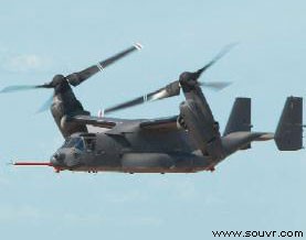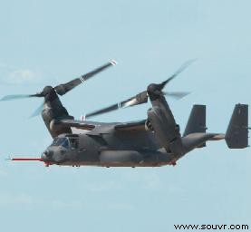 贝尔直升机公司生产的“鱼鹰”号重型倾转旋翼飞机是一款混合型飞机,融合了普通飞机与直升机的功能,性能超越了以往机型。该飞机可以垂直起飞、降落,并在空中悬停,同时也可在高海拔地区高速巡航。