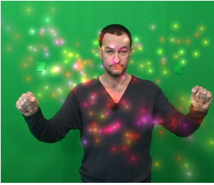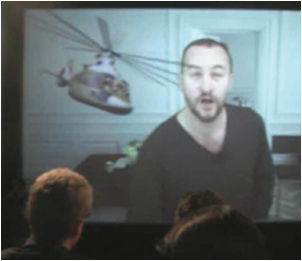 透过舞台经理的控制,可以将观众席实时视屏合成于3D剧场的表演之中。 例:将观众的脸放在3D直升机驾驶舱内。表演者可以任意操控观众的实时视屏创造惊奇的效果。