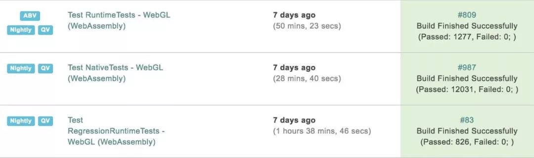 如今我们拥有了所有测试套件的Wasm变体,任何将要合并到程序主线的改动都会针对WebAssembly进行测试。