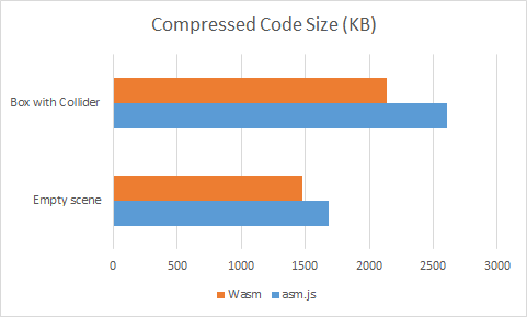 此外,WebAssembly开发版本的代码大小要比asm.js小数十MB,而非开发版本的大小会小几百KB。为了让你了解衡量基线,WebAssembly空项目的代码大小约比asm.js的小12%,如果包含3D物理则会小18%。