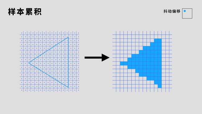 抖动(Jitter)通常是指像素采样位置的轻微调整,以达到累积多帧样本的目的,免去了一次性解决欠采样的必要。