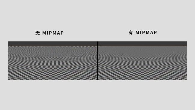 在下例中,远离摄像机的对象会在低分辨率的 Mip Map 中被采样,从而生成更符合实际的结果。