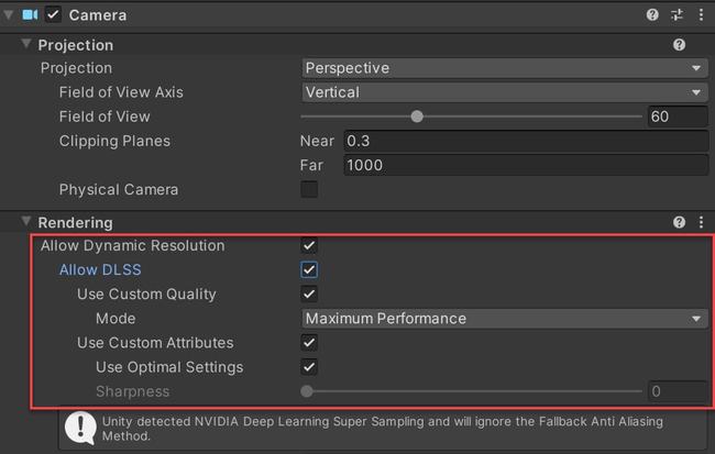 第 3 步:最后在场景主摄像机中启用 DLSS。