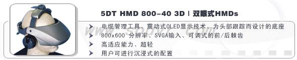 5DT头盔显示器(HMD)提供2种型号,视域分别为26°或40°。 5DT头盔显示器(HMD)800-26视域为26°,以LCOS技术为基础。 5DT头盔显示器(HMD)800-40以有机发光二极管(OLED)显示器为基础,视域为40°。
