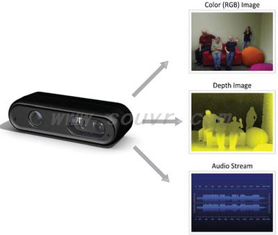 全部传感信息(包括深度图像、彩色图像和音频)通过USB 2.0端口传送给主机,传送时间完全吻合。