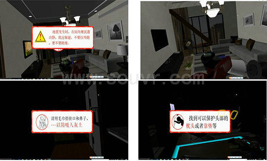 本系统利用虚拟现实技术制作三维仿真家庭环境,并模拟地震发生时情应该采取哪些应急与逃生措施。