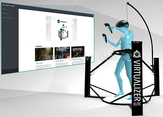 Cyberith提供VR模拟器,使Virtualizer ELITE与所有SteamVR游戏兼容,支持“自由定位”或“触摸板移动”。Cyberith独特的VR模拟器使Cyberith Virtualizer成为第一款与大量游戏兼容的VR跑步机!