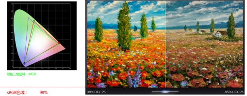 颜色覆盖范围 | 大于98%DCI-P3色域覆盖率 |