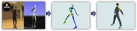 moven捕捉动作 => 导入MAX/MAYA骨骼绑定 => 导出人物动画